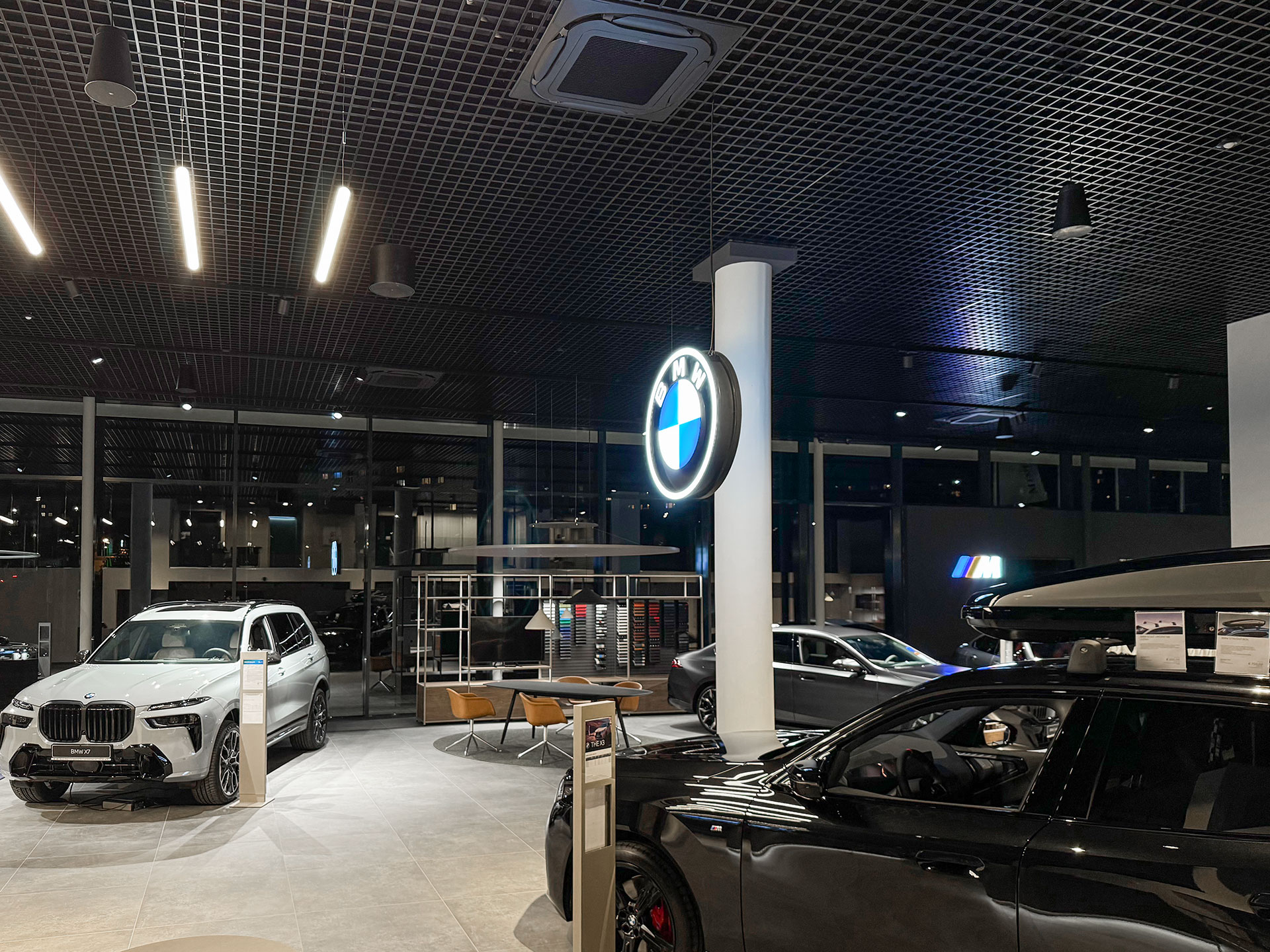 The system delivers even sound distribution with excellent clarity and low-frequency support, tailored to meet the acoustic and aesthetic requirements of a modern automotive showroom.