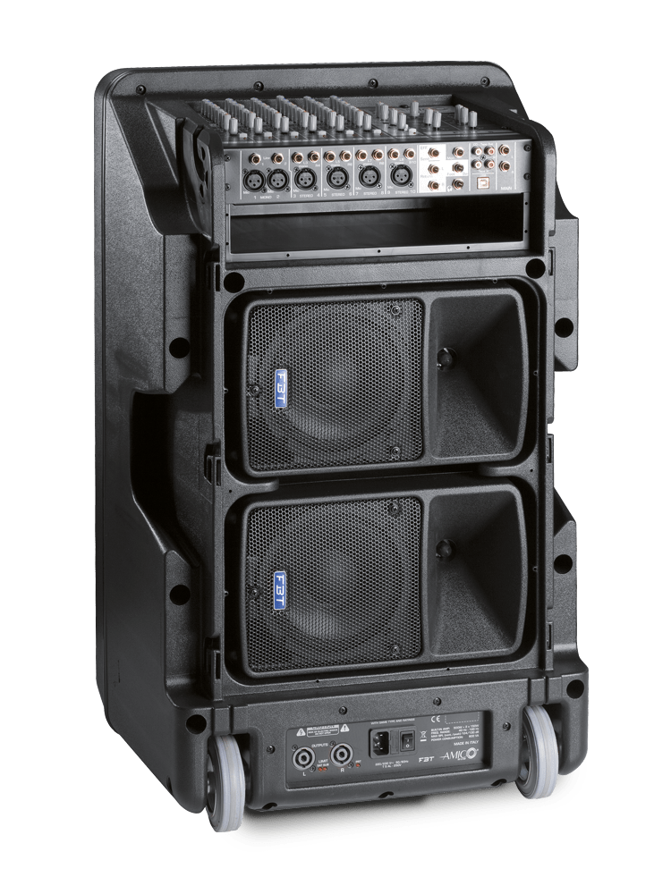 AMICO è il sistema audio professionale progettato per fornire un’esperienza di ascolto di alta qualità. Due satelliti e un subwoofer in un unico sistema robusto e facile da trasportare grazie alle ruote integrate. Grazie alla sua avanzata tecnologia di protezione dinamica attiva, il sistema offre una potenza di uscita massima di 500W per il subwoofer e 2x150W per i satelliti, al fine di garantire un’esperienza di ascolto di alta qualità.
