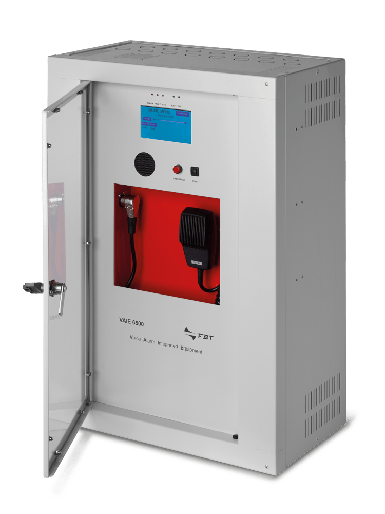 The VAIE 6500 compact systems, equipped with an EN54-16:2008 / EN54-4 certified control unit, have been designed for ease of installation and for operating in a vast range of applications. These systems are able to manage, depending on the model, up to 6 alarm zones via local controls, remote microphone station, and controlled inputs.